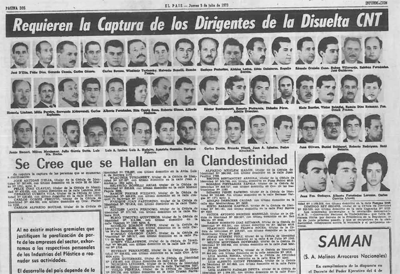 El 27 de junio de 1973 con la disolución del Parlamento da comienzo el golpe de Estado con Bordaberry a la cabeza dando inicio a 12 años de terror. Esa misma noche, la CNT declara la huelga general contra el golpe y en defensa de la democracia.