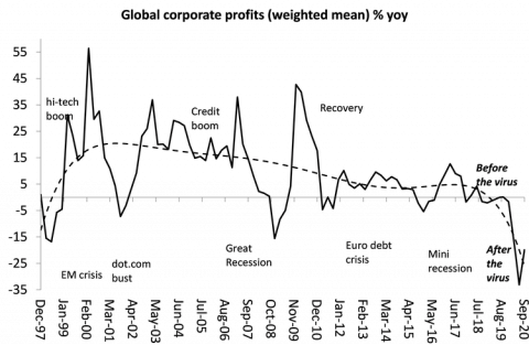 El Financial Times se ha sumado con su mensaje de esperanza y recuperación de Año Nuevo. Su columnista de economía, Martin Sandbu, sostiene que 2021 traerá un auge masivo del consumo a medida que se libere la demanda reprimida, respaldada por el alto ahorro acumulado en 2020, que ahora se gastará. Sandbu compara 2021 con el comienzo de una década de auge similar a los ‘locos años veinte’ del siglo pasado. El problema con este pronóstico es que: en primer lugar, para muchos países, la década de 1920 no fue tan espectacular. El Reino Unido sufrió una larga depresión en el crecimiento, la inversión y el empleo en esa década, mientras que Europa y Japón se encontraban en una situación desesperada, y se creó el clima para el surgimiento del militarismo y el fascismo.