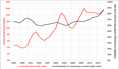 La rentabilidad solo aumentaría si se eliminasen algunas capas podridas de capital. Existen, por ejemplo, las llamadas empresas zombis, que obtienen pocos beneficios y solo pueden cubrir sus deudas. En las economías avanzadas, ahora estamos hablando de entre el 15 y el 20 por ciento de las empresas que están en esta situación. Estas empresas mantienen baja la productividad general, lo que impide que las partes más eficientes de la economía se expandan y crezcan.