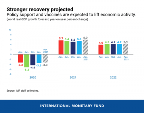 El FMI prevé una fuerte recuperación económica. El supuesto es que el virus puede controlarse hasta el punto que ya no sean necesarios los confinamientos y el distanciamiento social. Esto se debe principalmente a las campañas de vacunación.