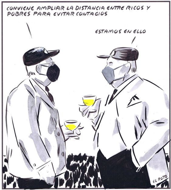 Esta clase social, esta oligarquía malla de oro hoy representada por la coalición de gobierno, es tan mezquina y voraz que no invertirá su capital en el país en tanto no exista la posibilidad de obtener ganancias. Es lo único que la mueve, la emociona y conmueve. No van a invertir ni por amor al prójimo ni en nombre de la patria. No lo hicieron antes, no lo van hacer ahora más allá del esfuerzo de Arbeleche por convencernos de lo contrario. En lugar de eso, colocan su dinero en el exterior porque es más rentable que ponerlo a trabajar. Se estima que Uruguay tiene más de 20.000 millones de dólares de plata de uruguayos colocada afuera del país. Por lo tanto esta pandemia está marcada por el carácter de clases de nuestra sociedad. No somos iguales ante esta tragedia, por el contrario, bajo ella las desigualdades y los niveles de explotación se incrementaron. El 10% más rico de América Latina goza del 71% de toda la riqueza acumulada, pero en términos redondos solo tributa el 5,4% de su renta en materia de contribución.