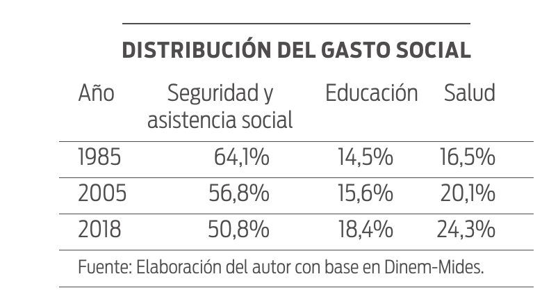 Es decir, el aumento objetivo de lo invertido en previsión social (afortunadamente producto de la llamada ley de flexibilización de pasividades de 2008) no solamente no limitó el “gasto” en educación y salud, sino que porcentualmente aquel se redujo y estos dos últimos aumentaron. Reforzando aún más nuestra visión, debe tenerse en cuenta que en el período se crearon dos ministerios nuevos: el Ministerio de Vivienda y Ordenamiento Territorial (1990), y el propio Ministerio de Desarrollo Social (2005).