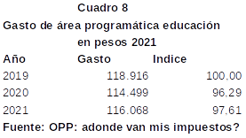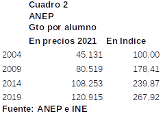 El cuadro 2 nos dice que en términos de gasto por alumno matriculado en la ANEP, éste aumentó poco más de dos veces y media.