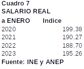 Finalmente el cuadro 7 nos trae la información sobre el salario real de trabajadores de la ANEP.