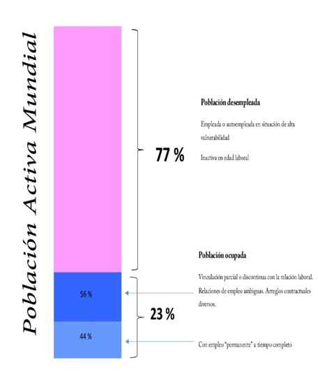 De hecho, lo que se está dando son formas parciales o discontinuas de asalarización, informales, combinadas con una creciente utilización de trabajo no pago o semipago (Van der Linden, 2008). Según un estudio de la OIT (2012), en 2008 más de la mitad de la fuerza de trabajo mundial estaba desempleada.