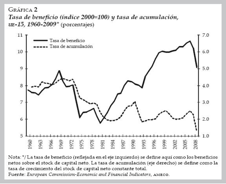Según datos de la OCDE, por ejemplo, las reservas reales de capital en el sector privado no residencial pasaron en Alemania de 8,4 puntos en la década 1960-1969 a 1,4 en el lustro 2001-2005; en Francia fue de 11,6 a 3,2 y en USA de 4,5 a 2,1 en las mismas fechas; mientras que en Japón fue de 12,5 a 2,4 entre 1965-1969 y 2001-2005 (Brenner, 2009).