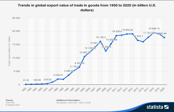 Fuente: • Worldwide export trade value 1950-2020 | Statista