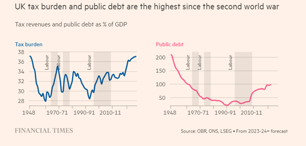 ¿Por qué los líderes laboristas son tan tímidos a la hora de aumentar la inversión pública? La primera razón es que, debido a la debilidad de la economía del Reino Unido, los ingresos fiscales del gobierno son demasiado bajos para financiar un aumento de la inversión. La única manera de hacerlo sería que el gobierno pidiera más prestado, es decir, emitiera bonos del gobierno a los bancos, etc. Pero eso aumentaría el déficit en el presupuesto del gobierno y aumentaría el nivel de la deuda pública, ya en nivel récord.
