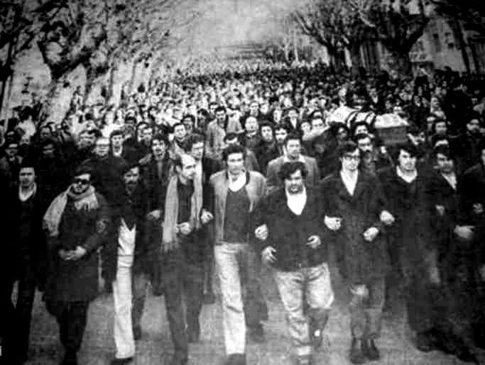 Imagen 1. Marcha desde la Universidad de la República donde fue velado Líber Arce, hacia el Cementerio del Buceo