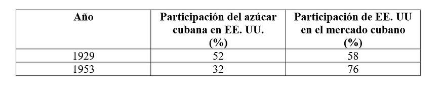 Obtenida la independencia después del periodo de ocupación/intervención norteamericana tras la primera guerra imperialista — según Lenin—, Cuba firma con los Estados Unidos en 1903 un tratado comercial, mal llamado de reciprocidad, que abría de par en par las puertas del mercado estadounidense para el azúcar cubano, a la sazón el principal y, casi sin ninguna otra opción, único mercado, algo que era un hecho desde el último cuarto del siglo XIX.