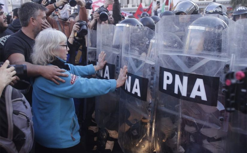 ¿Cómo lo está haciendo? Las innumerables medidas aplicadas por Milei desde el inicio de su gobierno han operado bajo la lógica de la «doctrina del shock» (Naomi Klein), por su profundidad y su velocidad, con el propósito de noquear al campo popular y progresista. Eso viene aceitado con un incremento de la represión bajo el paraguas del «Protocolo Bullrich», instrumento legal para reprimir con contundencia la protesta social. La violencia desproporcionada que se ha empleado contra la movilización de los y las jubilados/as es el ejemplo más paradigmático.
