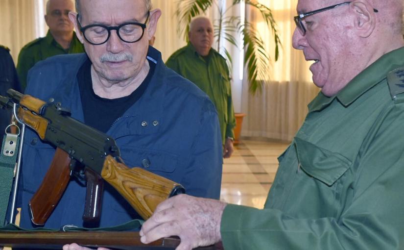 Adorado por las izquierdas del mundo y repudiado por la oposición —quien lo conoce como “el trovador del régimen”—, conversa frente a guitarras y una pintura hecha por presos cubanos a los que cantó hace dos décadas, justo una semana después de solicitar a las Fuerzas Armadas un fusil AKM si Donald Trump invadiera militarmente la isla. “Pero es de mentira; una imitación muy bien hecha”, señala.