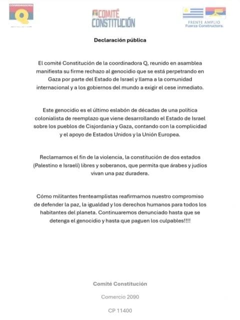 Reunido en Asamblea, rechaza el genocidio perpetrado en Gaza por parte del Estado de Israel.